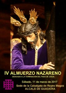 El pasado sábado celebramos el IV Almuerzo Nazareno de nuestra Hermandad en la sede de la Cabalgata de Reyes Magos de Alcalá, a la cual agradecemos desde estas líneas la cesión, un año más,  de sus instalaciones para el desarrollo de esta gran jornada de convivencia entre nuestros hermanos, y cuyos beneficios, este año, serán destinados al dorado y terminación del paso de Nuestro Padre Jesús Nazareno.