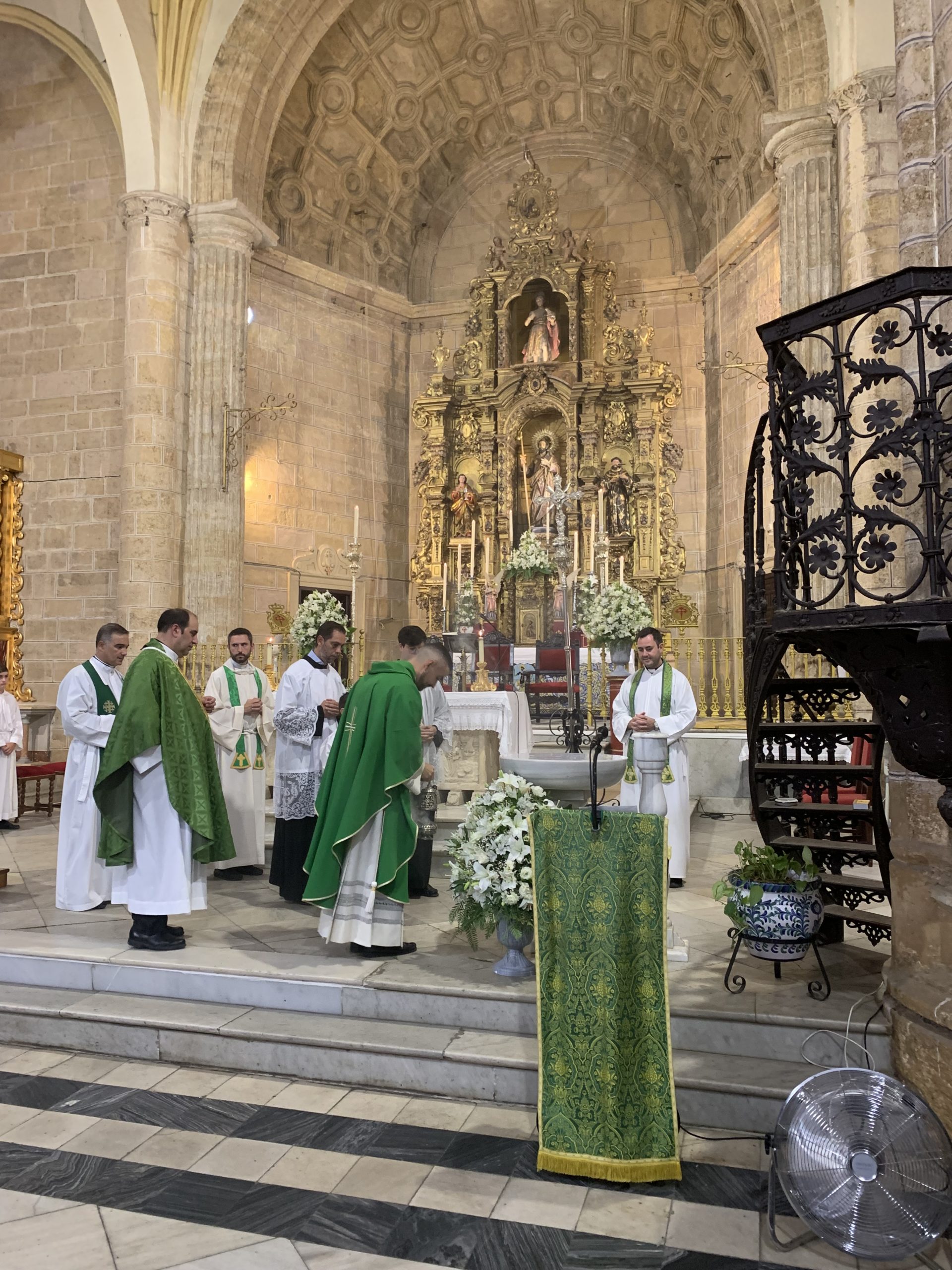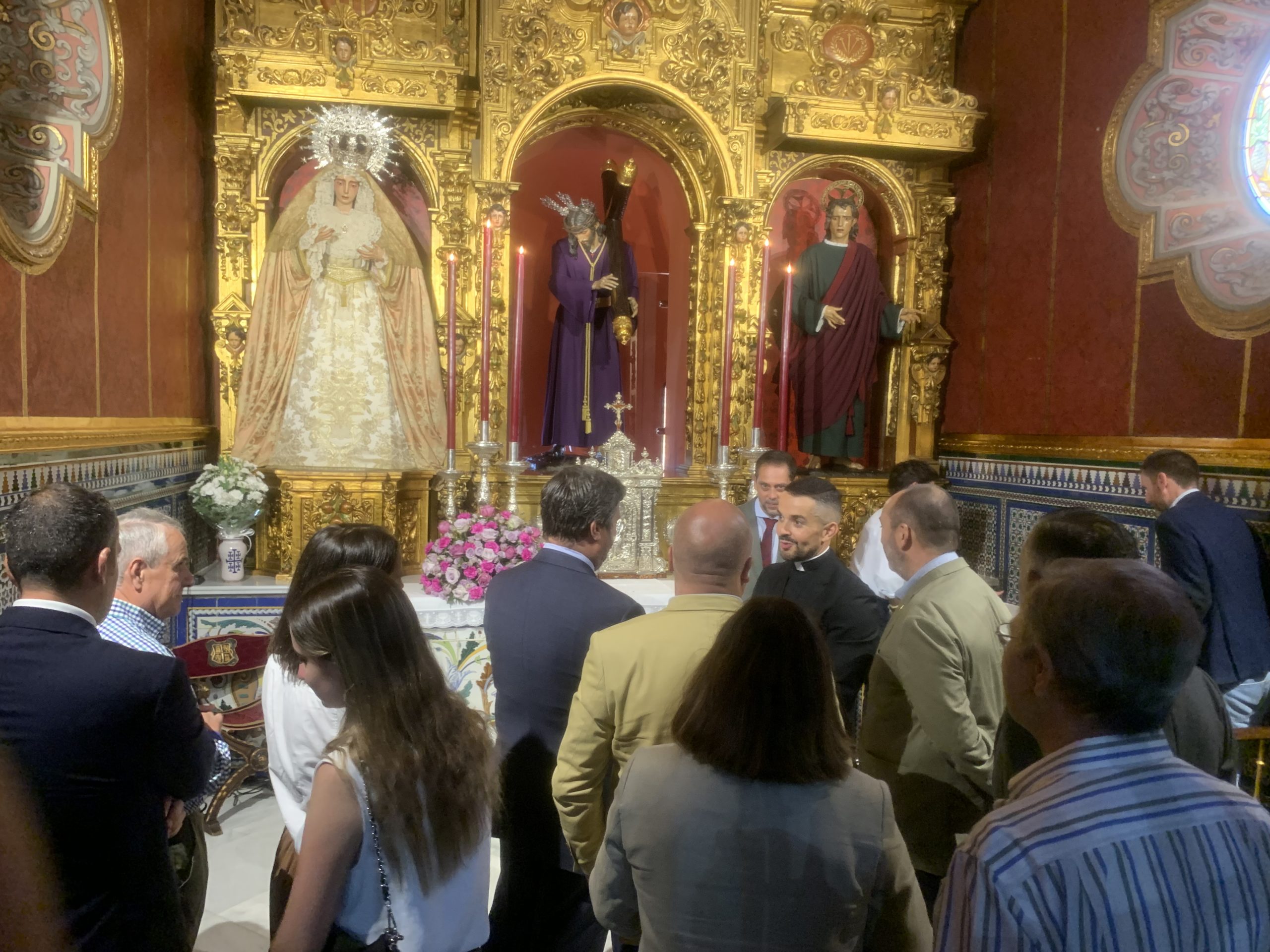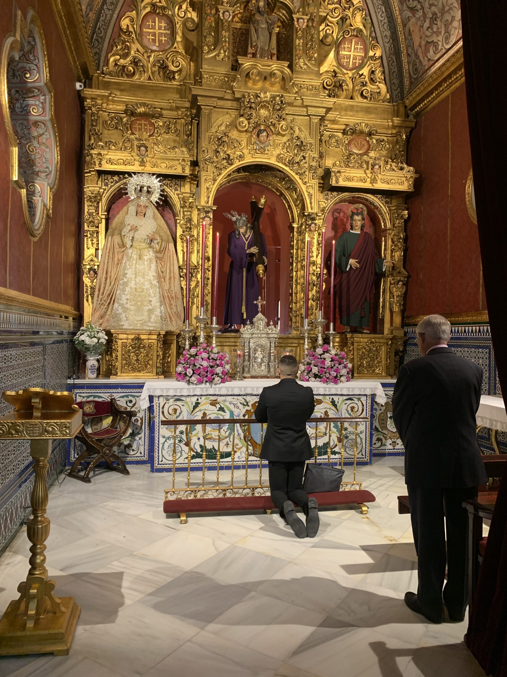 En la mañana de hoy, 10 de septiembre de 2023, ha tomado posesión como nuevo párroco de Santiago don Pedro Sola Sola. Antes de la Eucaristía, accedió a la capilla sacramental para rezar ante el Santísimo. Igualmente, al finalizar ésta, saludó a la Junta de Gobierno ante nuestros Titulares.
